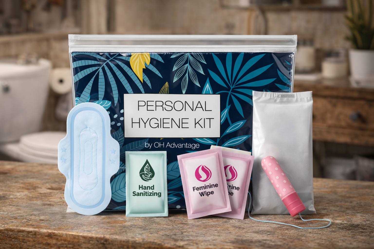 Women's Personal Hygiene KitIncludes: 1 Tampon, 1 Sanitary-Pad, 1 Bag for Disposal, 2 - Feminine Wipes, 1 - 70% alcohol hand wipes.$8.55View detailsAdd to cart